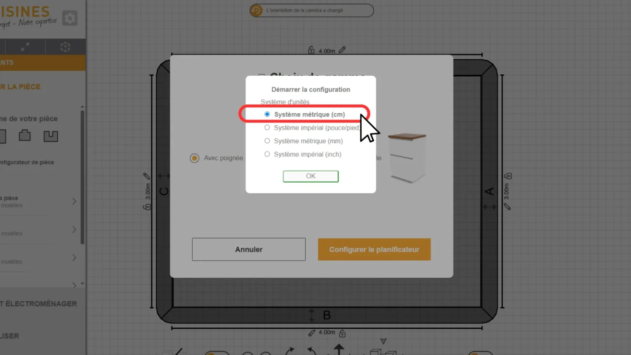 Choisissez l'unité de mesure (cm)